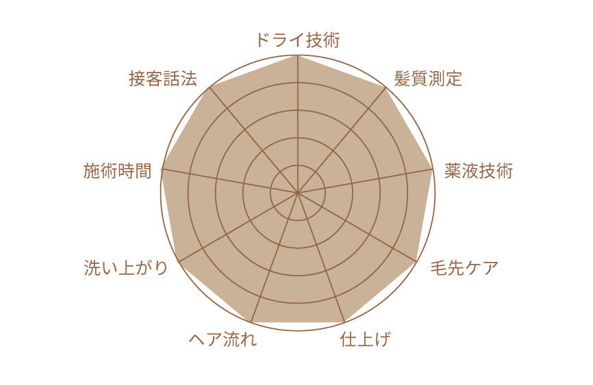 動きのある状態でのまとまり感があるか。本来もつ髪の美しさをひきだし、ダメージレス・うるおいのある魅力的な髪へ。